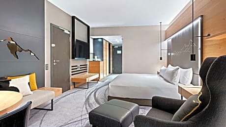Located between terminals 1 and 2 in Munich Airport, this grand hotel has a striking glass façade, a spa with pool and a 24-hour gym. Rooms feature large, soundproofed windows. The Hilton Munich Airport provides spacious, air-conditioned rooms decorated in soft cream colors. Bathrobes and slippers are provided. The Nightflight Bar features colorful lighting and giant palm trees. Guests can enjoy an American buffet, or fine international cuisine in the Restaurant Mountain Hub. Spa facilities at the Hilton Munich Airport include a sauna, steam room and hot tub. Guests can also book massages here, and can enjoy healthy snacks at the pool bar. Munich city center can be reached in 40 minutes by S-Bahn train.
