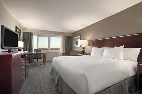 This hotel features free airport shuttle services to John F. Kennedy International Airport, which is 1 mi away. A seasonal indoor pool and on-site restaurant are also featured at this Jamaica, Queens hotel. Each guestroom at the Hilton New York JFK Airport Hotel has a 42-inch flat screen TV and a refrigerator. Free WiFi access and a work desk are also available. Enjoy a workout in the fitness center, or check email at the business center in the JFK Airport Hilton Hotel. Restaurant 144 serves a variety of entrees for breakfast, lunch, and dinner. The sports bar offers full bar service and pub fare. Flushing Meadows Corona Park, home of the US Open, is 6.6 mi from the hotel. The Aqueduct Racetrack is 1.8 mi away.