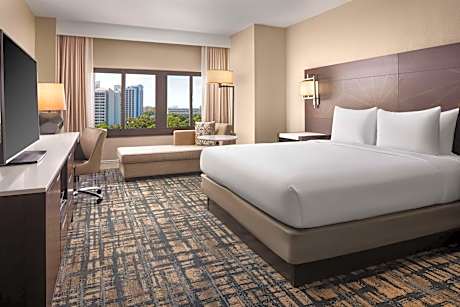 Located in the Walt Disney World Resort, this Hilton hotel is connected to Disney Springs via Skybridge and offers guests continuous shuttle service to all Disney parks. The hotel features 5 on-site restaurants and 2 outdoor heated pools. A small refrigerator, flat-screen cable TV, and coffee-making facilities are provided in each room at Hilton Orlando Lake Buena Vista. A spacious seating area is also included. Children can enjoy the on-site children's pool. In addition, this Hilton Orlando Lake Buena Vista offers a fitness center, hot tub, and jogging trail. "On-site dining options including classic American buffet breakfast, Japanese, outdoor pool bar and convenient grab-and-go market. Disney Springs is a 2 minute walk away. Typhoon Lagoon water park is 5 minutes' drive from the property.