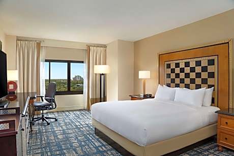 Located in the Walt Disney World Resort, this Hilton hotel is connected to Disney Springs via Skybridge and offers guests continuous shuttle service to all Disney parks. The hotel features 5 on-site restaurants and 2 outdoor heated pools. A small refrigerator, flat-screen cable TV, and coffee-making facilities are provided in each room at Hilton Orlando Lake Buena Vista. A spacious seating area is also included. Children can enjoy the on-site children's pool. In addition, this Hilton Orlando Lake Buena Vista offers a fitness center, hot tub, and jogging trail. "On-site dining options including classic American buffet breakfast, Japanese, outdoor pool bar and convenient grab-and-go market. Disney Springs is a 2 minute walk away. Typhoon Lagoon water park is 5 minutes' drive from the property.