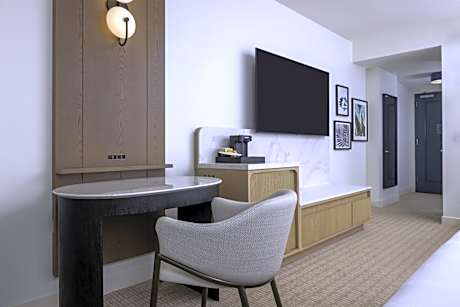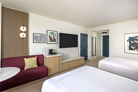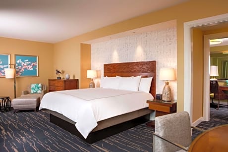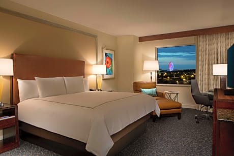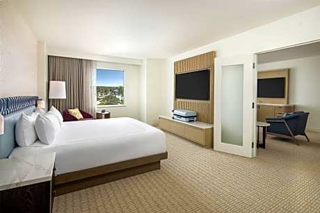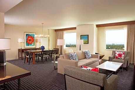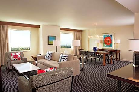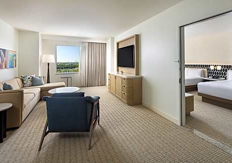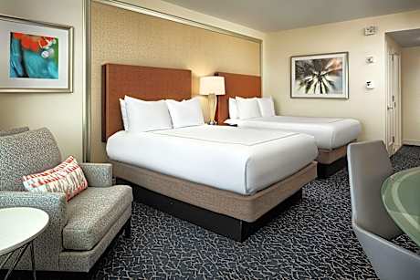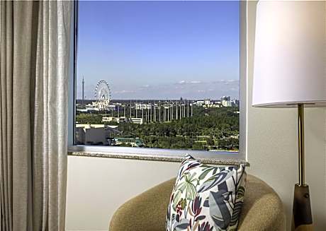 This Orlando hotel is 1.9 mi from Universal Orlando Resort and 2.9 mi from the shops and restaurants of International Drive. Hilton Orlando features on-site dining. The Orange County Convention Center is directly connected. Each bright and contemporary guest room at Hilton Orlando is equipped with a 42-inch and 47-inch flat-screen TVs. A large work desk with an ergonomic chair is also provided. WiFi is available. The 26 tropically landscaped acres of the Orlando Hilton feature 2 swimming pools and a lazy river. The on-site fitness center has cardio machines. The Scratch Market is open for breakfast, lunch, and dinner and has a gelato bar. Universal Orlando is 10 minutes' drive from the Orlando hotel, and Walt Disney World is 9.4 mi away.