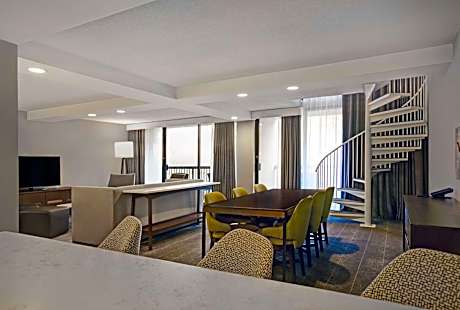 Located just off Highway 54 and less than 1.5 miles from the Peachtree city center, this hotel is set on 19 lush, wooded acres. Guests can enjoy both outdoor and indoor pools. The bright rooms of the Hilton Peachtree City Atlanta Hotel & Conference Center offer a private balcony or patio overlooking Lake Peachtree or the forest. Cable TV and a work desk are also included. Guests of the Hilton Peachtree City Atlanta Hotel & Conference Center can dine at The Terrace, featuring both buffets and a la carte menus. Firepit BBQ restaurant and lounge offers a place to relax with drinks, food and billiards. A 10,000 square-foot fitness center and a variety of sports courts are open for active guests. Board games, bicycles and golf cart rentals are also provided. The Frederick Brown Jr. Amphitheater is less than 3 miles from the hotel. Atlanta Motor Speedway is 22 miles away.
