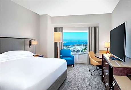 - Scenic Bay Views: Each room boasts a 55-inch flat-screen TV and large windows with warm, contemporary decor, overlooking the beautiful San Diego Bay.