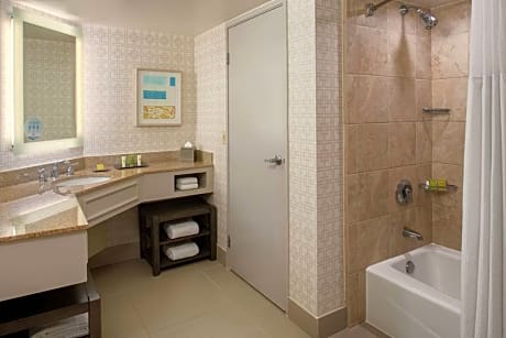 This Del Mar hotel is 20 minutes’ drive north of downtown San Diego. The hotel offers an outdoor swimming pool and 2 hot tubs. Hilton San Diego/Del Mar features cable TV. Rooms are also equipped with designer bath amenities, a coffee maker and a work desk. Guests can use the modern gym or the business center at the Del Mar Hilton. A gift shop are also available. The San Diego Hilton's Coastal Kitchen Restaurant serves American cuisine with a California twist for breakfast, lunch and dinner. A lounge with an outdoor fire pit and patio area is also available. The Del Mar Racetrack is 15 minutes’ walk from this hotel. Oceanfront fun at Solana and Del Mar beaches is 2 mi drive away.