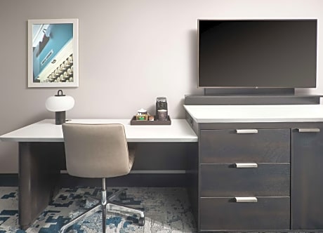 Each guestroom is equipped with a coffee maker and refrigerator, providing added convenience. After a busy day, guests can unwind in comfortable beds featuring 250 thread-count linens and down duvets. For dining, Affinity Restaurant serves classic American dishes for breakfast, lunch, and dinner, with room service available for those who prefer to dine in their rooms.