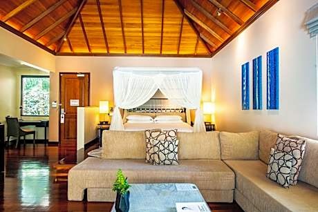 Located on Silhouette Island, Hilton Seychelles Labriz Resort and Spa is a Green Globe Certified hotel that offers spacious, fully-equipped villas with a private terrace. There is a full-service spa and an infinity pool set among tropical palm trees. Each villa features deluxe bedding and is fitted with a flat-screen TV, a DVD player and a sofa. Some rooms have an Indian Ocean view. The resort features 7 restaurants and cafés serving Italian, Japanese and locally infused cuisine with a french twist in a sophisticated setting. Live entertainment shows and tropical cocktails can be enjoyed at Bar Lo Brizan. At Hilton Seychelles, guests can make use of the 5-star PADI diving center and explore the island’s colorful reefs. Set in a rocky terrain with lush vegetation, the hotel has numerous walking and hiking trails nearby. The Kid’s Club at the Hilton Seychelles is specially created for kids from 4 to 12 years old. Wedding and event facilities are also available. Hilton Seychelles Labriz Resort and Spa is 20 minutes’ drive from the pier where a 35-minute chargeable boat ride can take guests to Seychelles International Airport. An airport shuttle is available upon request at an additional charge. 20 minute drive from the pier, should be 20-30min drive to the jetty. Boat transfer is a necessity to reach the property: EU 235 per person. Kids 3-13 EU 117.5, Kids 0-3 Free. The Labriz Lounge, the Jetty to go to Hilton Seychelles Labriz Resort & Spa, is a 20 minutes drive from Seychelles International Airport. An airport shuttle is available upon request at an additional charge.