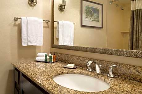 This hotel is located off Interstate 64 and is 11 miles from downtown St. Louis. The property features an outdoor pool and free parking. Rooms provide a 55"- or 65"-Inch HDTV. Hilton St. Louis Frontenac rooms include a coffee maker. The rooms are equipped with free Wi-Fi and cable TV. The Frontenac Hilton offers a business center and a gym. Guests the Hilton Frontenac can dine in the Provinces Restaurant, which features American and international cuisine. The hotel also features the Provinces Grill. Hilton St. Louis is across the street from the Plaza Frontenac Shopping Center. The hotel is 4 miles from Missouri Baptist University.