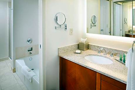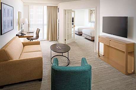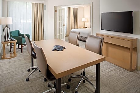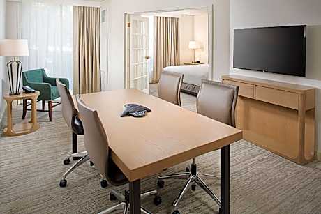 Located in the Atlanta Perimeter Center’s business district, this all-suites North Atlanta hotel is just 15 mi away from Downtown Atlanta and features a seasonal outdoor pool, on-site restaurant and modern guest rooms with free WiFi. Every suite at Hilton Atlanta Perimeter Suites provides 2 flat-screen LCD HDTVs with premium cable channels, a balcony and a sofa bed. A mini bar, microwave and refrigerator are also included. Guests can start the day with a workout at the hotel’s modern fitness center or grab a bite at The Dunwoody Grill, which offers classic American fare for breakfast, lunch and dinner. The hotel offers over 6,000 square feet of flexible meeting space, along with a business center with complimentary printing, fax and copy services. Complimentary shuttle service is also offered for transportation within a 3 mile radius of the property. Perimeter Mall and Dunwoody Transit Station are both less than 0.8 mi from the hotel. Hartsfield-Jackson Atlanta International Airport is 20 mi away.