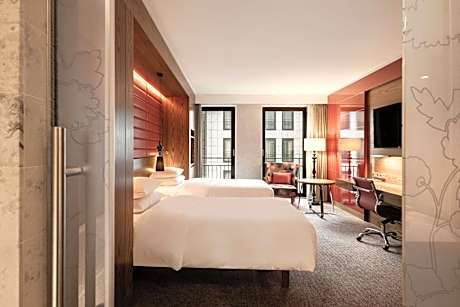 Hilton The Hague is located in the historic city center and embassy quarter of The Hague, just moments from the high-end shopping area in the city center. Panorama Mesdag is located next door and Noordeinde Palace is 1476 feet away, while the beach of Scheveningen can be reached within a 15-minute tram or bike ride. Private parking is available on site. Free WiFi access is featured in public areas. The hotel features spacious rooms and suites with a desk and flat-screen TV. The bathroom features a bath, shower and free toiletries. Some rooms have access to the executive lounge which features private check in/out, WiFi access in the room and a terrace. Guests can also enjoy special family amenities including babysitting service and a children's menu. BlueBlood is the place to explore a new world of exciting food and drinks. It’s an environment where people can come together to connect over stunning dishes, amazing drinks and a place to share real experiences. Mauritshuis, Vredespaleis and high-end shopping at the Lange Voorhout are within 0.6 mi. The Hague Central Station is located at 1.2 mi distance.