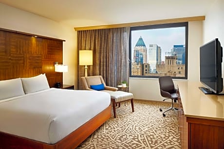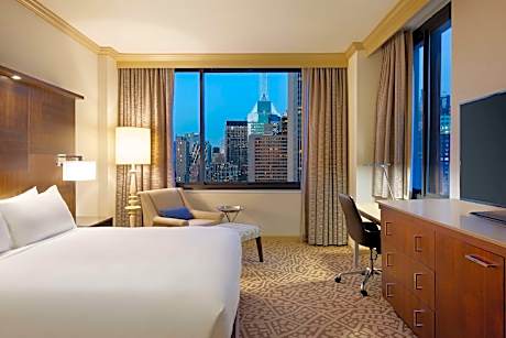 Located in New York, a 8-minute walk from Bryant Park, Hilton New York Times Square provides accommodations with a fitness center, private parking, a shared lounge and a bar. This 4-star hotel offers room service and a 24-hour front desk. The property is 500 yards from the city center and a 8-minute walk from New York Public Library. All guest rooms will provide guests with a fridge. Guests at the hotel can enjoy an à la carte or an American breakfast. At Hilton New York Times Square you'll find a restaurant serving American cuisine. Vegetarian, vegan and gluten-free options can also be requested. Popular points of interest near the accommodation include Times Square, Macy's and Radio City Music Hall. LaGuardia Airport is 7.5 miles away.
