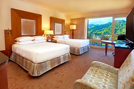 Each guest room at the Hilton Trinidad & Conference Centre is a haven of comfort, featuring tasteful décor, a flat-screen satellite TV, and a coffee maker for your convenience. The private balconies present an inviting space to unwind with panoramic views of the surrounding beauty.