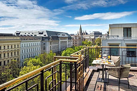 Located on the prestigious Ringstraße boulevard opposite the Stock Exchange, Hilton Vienna Plaza offers guests a unique blend of contemporary comfort and Art Deco elegance. Just a 10-minute walk from Vienna's famous Graben shopping street, this hotel places you in the heart of Austria's capital, surrounded by its rich history and vibrant culture.