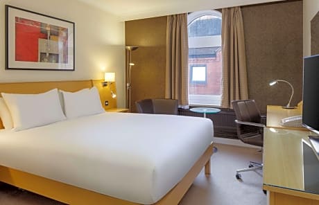 Ideal for solo travelers or couples, this modern room offers a comfortable queen Hilton Serenity bed, a 50-inch HDTV, tea and coffee making facilities, a work desk with USB charging ports, and free WiFi for Hilton Honors members booking directly. The private bathroom includes premium Crabtree & Evelyn toiletries for a relaxing experience. Guests can dine at Tower’s Restaurant with views of Clifford’s Tower or opt for room service. Accommodates up to 2 adults.