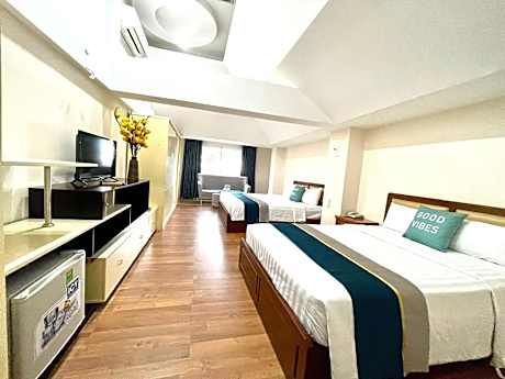 Providing free toiletries, this triple room includes a private bathroom with a walk-in shower and slippers. The spacious air-conditioned triple room provides a flat-screen TV with cable channels, soundproof walls, a seating area, a wardrobe as well as city views. The unit offers 2 beds.