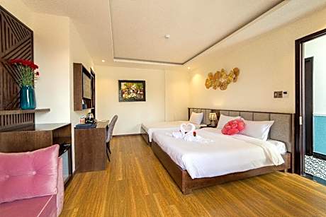 Experience an abundance of unparalleled facilities and features at Hoang Trinh Hotel.Maintain seamless communication using the complimentary Wi-Fi at hotel. Effortlessly arrange transportation to and from the airport using the hotel's airport transfer services.Discover the wonders of Hoi An with ease by utilizing the services provided by car hire and shuttle.For visitors traveling by automobile, complimentary parking is available.During your stay at this fantastic hotel, the attentive front desk personnel can provide you with a range of amenities such as concierge service, express check-in or check-out, luggage storage and safety deposit boxes.In search of city's top entertainment, seek assistance at the hotel's ticket service and tours for reservations.At the hotel, utilize the on-site dry cleaning service and laundry service to maintain your beloved travel attire fresh, allowing you to bring fewer clothes. Craving relaxation? Make the most of your stay at the Hoang Trinh Hotel with convenient amenities like room service and daily housekeeping at your disposal.For visitors wishing to smoke, designated smoking zones can be found.At Hoang Trinh Hotel, every guestroom is provided with convenient amenities and fittings to ensure a comfortable stay. Enhance your experience at hotel with the knowledge that certain rooms are equipped with linen service, blackout curtains and air conditioning for your convenience. A few accommodations within Hoang Trinh Hotel offer unique design elements such as a balcony or terrace. Certain rooms boast in-room amusement features such as television and cable TV, offering guests an enjoyable stay.In select rooms within the hotel, a refrigerator, bottled water, instant coffee, instant tea and mini bar is available to cater to your requirements when desired.In the hotel, certain guest bathrooms come equipped with essential bathroom amenities, such as a hair dryer, toiletries and bathrobes, ensuring a comfortable stay for guests. Begin your day with a scrumptious on-site breakfast available each morning at Hoang Trinh Hotel.At the hotel, an assortment of easily accessible and delicious meal choices are available to satisfy your appetite whenever it strikes.Enjoy an entertaining evening with your fellow travelers at the hotel's bar. During your stay at hotel, an array of engaging activities and amenities guarantees a delightful experience.Be sure to drop by the pool at hotel at least once during your stay.At Hoang Trinh Hotel, utmost care is taken to ensure guests' comfort. Relish your preferred beverage in your swimwear by the hotel's poolside bar.