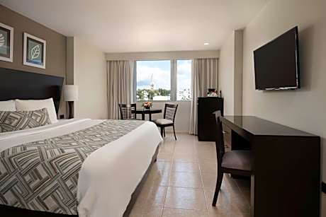 Featuring an on-site casino and restaurant, this hotel is located in downtown Santiago, a 5-minute walk from El Monumento Santiago (the Santiago Monument). It offers bright rooms with free Wi-Fi. The guest rooms at Hodelpa Centro Plaza are furnished with a balcony and a mini-bar. They are equipped with cable TV. Vista Restaurant, located on site, is open for dinner and serves fusion cuisine. The gym features a variety of cardio machines and panoramic views of the city. A business center is available off of the Centro Plaza Hodelpa’s lobby. Shuttle service to Cibao International Airport, 10 mi away, is available at Hodelpa Centro Plaza. Las Aromas Golf Club is a 5-minute drive from the hotel. Airport transfers can be arranged upon prior request.