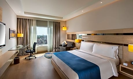 Holiday Inn Agra MG Road offers top-notch services and amenities, ensuring guests experience utmost comfort.Share your photos and respond to emails at your convenience, thanks to the free Wi-Fi internet access offered by hotel.Should you require transportation to or from the airport, hotel is able to organize it prior to your arrival date. Experience the wonders of Agra with ease by utilizing the services provided at car hire.Visitors can take advantage of complimentary parking directly at the hotel. Reception services such as concierge service, express check-in or check-out, luggage storage and safety deposit boxes are available to accommodate your requirements. Securing top-notch tickets and snagging sought-after dining reservations become effortless, thanks to the hotel's ticket service and tours.Traveling with minimal baggage is achievable at Holiday Inn Agra MG Road, as the hotel's dry cleaning service and laundry service ensures your garments stay fresh.Room amenities like 24-hour room service, room service and daily housekeeping contribute to making a perfect selection for your stay. The hotel maintains a completely smoke-free zone, providing a breathable atmosphere.Smoking is limited to specified smoking zones.Each accommodation at Holiday Inn Agra MG Road is thoughtfully created and adorned to provide visitors with a comfortable, home-like atmosphere.In certain rooms, the hotel offers linen service, blackout curtains and air conditioning for guest convenience and satisfaction.In select rooms, guests at the hotel can enjoy top-notch in-room entertainment with daily newspaper, television and cable TV available for their convenience.Rest assured, in a few chosen rooms, you will find the convenience of a refrigerator, a coffee or tea maker, bottled water and mini bar at your disposal. Maintain your cleanliness and comfort using a hair dryer, toiletries, bathrobes and towels available in select guest restrooms. Embark on your holiday experience in the most ideal manner. Commence each morning of your visit with an on-site breakfast.Experience the delight of a fresh morning by savoring excellent coffee at the cafe situated within hotel.Should you prefer not to venture out for a meal, the enticing culinary choices at hotel are always available for your satisfaction. Experience an unforgettable evening with your fellow travelers just a short distance away, at hotel's bar. Indulge in the numerous pursuits available at Holiday Inn Agra MG Road. Each day at hotel, immerse yourself in the invigorating waters of the pool, perfect for a rejuvenating plunge or a series of revitalizing laps.For individuals who don't want to skip their exercise routine, visiting the hotel fitness center ensures you maintain your vitality and wellness.