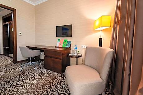 Holiday Inn Aktau By IHG provides flawless service and all the necessary facilities for visitors. Stay connected with your associates, as complimentary Wi-Fi is available during your entire visit.To facilitate your arrival and departure, you can pre-book airport transfer services prior to checking in.The hotel offers taxi and shuttle amenities for your ease in navigating around Aktau.When arriving by car, you'll be grateful for the on-site complimentary parking at hotel. The hotel offers reception amenities including concierge service, luggage storage and safety deposit boxes to ensure a comfortable stay for guests. Should you require assistance, the ticket service and tours can also aid in booking tickets and securing reservations at the finest shows and events in the vicinity. The hotel also features a fireplace, providing a cozy ambience during cool evenings. Whether you're here for an extended stay or simply require fresh garments, the hotel ensures your cherished travel attire remains spotless and accessible with the convenience of laundry service located on the premises.Your stay will be comfortable with the presence of 24-hour room service, room service and daily housekeeping as an in-room amenity for your relaxation and enjoyment.Smoking is permitted solely in the specified smoking zones allocated by hotel. In order to ensure the utmost level of relaxation, the guestrooms feature an inviting design and are equipped with all basic necessities, creating a delightful stay experience.To ensure a pleasant stay, a selection of rooms at hotel come furnished with linen service and air conditioning, all designed with your ease in mind. In select rooms, visitors can enjoy a touch of amusement with the availability of daily newspaper, television, in-room video streaming and cable TV for their entertainment needs. Within specific rooms, a refrigerator, a coffee or tea maker and mini bar is conveniently available for your use.Understanding the significance of bathroom facilities in enhancing visitor contentment, hotel offers a hair dryer, toiletries and bathrobes within a few chosen chambers. Start your day stress-free at Holiday Inn Aktau By IHG as breakfast is made available for you on the premises.How about kicking off each day of your getaway with a delicious cup of coffee? At the hotel, relish in the invigorating taste of a freshly brewed, excellent coffee.Various excellent meal offerings at hotel ensure that enticing and easily accessible options are constantly available.Upon your arrival, don't miss experiencing bar for enjoyable in-house evening entertainment. Visitors staying at Holiday Inn Aktau By IHG have the option to receive groceries in their room for meal preparation, courtesy of the unique service provided by the hotel. Throughout the day, engage in the entertaining activities available at Holiday Inn Aktau By IHG. Guests who enjoy maintaining their fitness regimen while on holiday can visit the fitness center provided by hotel.