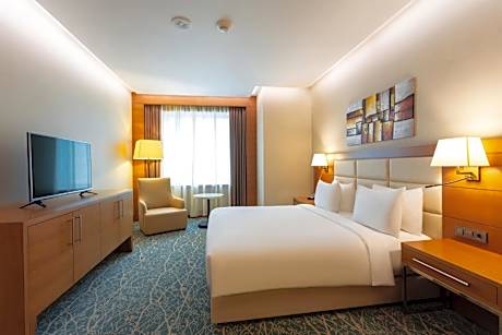 Great care is taken to ensure guests experience comfort through top-notch services and amenities.Remain linked during your visit by utilizing the complimentary internet access available. Prior to your check-in date, you can arrange airport transportation services, guaranteeing a seamless and efficient experience for both arrival and departure.Discovering Baku becomes even more accessible through the car hire and shuttle amenities provided at the hotel.Parking is accessible, supplied by the hotel for guests who arrive by car. Effortlessly plan your daily activities and travel requirements with concierge service, express check-in or check-out, luggage storage and safety deposit boxes provided by the front desk services.Securing top-notch tickets and reserving prime dining spots become effortless through assistance from the hotel's tours.For extended visits or whenever required, the dry cleaning service and laundry service ensures your preferred travel garments remain clean and accessible.During leisurely days and evenings, in-room amenities such as 24-hour room service, room service and daily housekeeping enable you to maximize your stay in the room.The hotel is completely smoke-free.In limited designated zones, smoking is exclusively permitted. Crafted for coziness, every guestroom provides an array of features, guaranteeing a tranquil night's sleep while maintaining the level of comfort. For a more enjoyable stay, select rooms at hotel are equipped with linen service and air conditioning. For certain chosen rooms, guests can enjoy in-room amusement like television and cable TV as a part of their stay.Rest assured that your hydration needs will be met, as some guestrooms are equipped with a coffee or tea maker and mini bar.It is worth noting that certain guest bathrooms feature a hair dryer, toiletries and bathrobes for your convenience. Each morning at Holiday Inn Baku By IHG, a scrumptious, homemade breakfast kick-starts the day. Begin your holiday mornings right with your essential cup of coffee, offered daily at the cafe on-site. During your visit, indulge in a range of delightful culinary choices at hotel to enhance your experience. Concerned about your dining preferences? Fret not! Holiday Inn Baku By IHG offers an assortment of culinary varieties featuring kosher choices, catering to all tastes. Experience a fantastic evening effortlessly! Relish an entertaining night without venturing beyond the confines of the bar. Experience unparalleled comfort as groceries can be brought right to your room at Holiday Inn Baku By IHG through their distinctive delivery assistance.Do you possess exceptional culinary skills? Prepare your meals personally within the hotel at its shared kitchen. Holiday Inn Baku By IHG provides a superb assortment of leisure amenities for guests to enjoy.Treat and spoil yourself by stopping at massage, steam room, spa and sauna for a memorable experience. Begin your holiday perfectly by taking a plunge into the swimming pool. Eliminate those holiday calories by stopping by hotel and making use of their well-equipped exercise amenities.