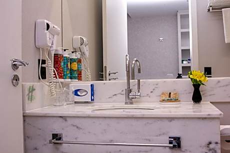 Offering an outdoor pool and an on-site restaurant and bar, the elegant Holiday Inn Belo Horizonte Savassi is located 1148 feet from Patio Shopping Savassi Mall. Free WiFi access is available and private parking is offered on site for a surcharge. Decorated in neutral tones, the chic and sophisticated air-conditioned rooms here will provide you with a Smart TV, a mini-bar and a private bathroom. Extras include free toiletries and a hairdryer. At Holiday Inn Belo Horizonte Savassi guests will find a fitness center, a 24-hour front desk and room service. Also located on site, Drummond restaurant offers the best of traditional food and contemporary cuisine. Pampulha lake is 7.5 mi away, Contagem is 12 mi from Holiday Inn BH and Tancredo Neves International Airport is at a distance of 26 mi. Transfers to Inhotim are available daily for a surcharge (except on Mondays).
