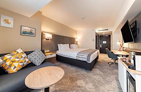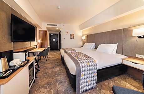 This is a modern centrally located 4-star hotel, in the heart of business and financial area, dedicated to those business people wanting more out of their stay in Bucharest. After a busy day, guests can relax in the Up Fit Gym or enjoy the local and international delicacies featured by the Happy Inn. For a couple of drinks, the bar Joy Café is available. Close by are banks and offices, as well as a pleasant area of the National Park and Stadium. Souvenirs and shopping opportunities are also a few minutes away in Bucharest Mall and Unirea Shopping Center. It is a short drive away from the Parliament Palace and International Conference Center, the world’s second largest building by surface area, and only 25 minutes from Henri Coanda International Airport and Baneasa Airport.