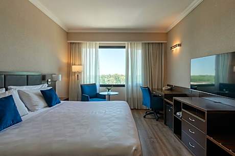 Set in a modern building only a 10-minute drive from Ezeiza international airport, the hotel offers luxurious décor and gym facilities. There is an on-site fitness center, a wide range of spa services and 2 dining options. Holiday Inn Ezeiza Airport has chic rooms with air conditioning, free Internet access, flat-screen cable TV, work desks with ergonomic chairs and seating areas with mini-bars. All rooms have open city views and private bathrooms with baths. Guests can wake up to fresh juices and croissants for breakfast at Bar La Bodega, or enjoy it in the privacy of the room. El Mangrullo Restaurant offers local specialties in an elegant setting. Las Toscas Shopping Mall and the polo fields are a 15-minute drive from Holiday Inn Ezeiza Airport. The tour desk is always ready to assist with tips on visiting the area and there is 24-hour front desk service. The hotel offers four room types : Standard Double Room with Two Double Beds, Standard King Room, Standard Double Room with Two Double Beds - Disability Access and Deluxe King Suite.