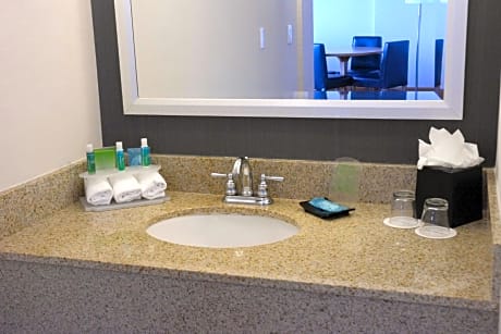 Located in Stamford, this hotel, offers an on-site indoor pool and free WiFi. Each morning, a free breakfast is served and there is an on-site fitness center open to guests at the Holiday Inn Express Stamford. Complimentary hotel shuttle is also available to Harbor Point or Downtown Stamford. Each room at the Stamford Holiday Inn Express features a flat screen TV, microwave and refrigerator. Some rooms like the Executive Suite have a kitchenette with a dishwasher. The beach at Cummings Park is 3.1 mi from the hotel and the beach at Cove Island Park is less than 4.3 mi away. Ice skating at Stamford Twin Rinks is 3.7 mi away.