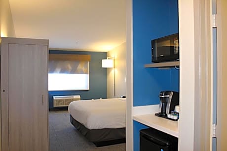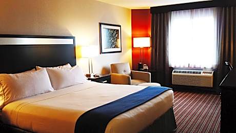 This hotel is a 12-minute drive from downtown Bakersfield, California and Kern City Golf Course. It features an on-site putting green, basketball court and spacious rooms with free Wi-Fi. Every room at the Holiday Inn Express Bakersfield is furnished with a microwave, refrigerator and coffee maker. All rooms are warmly decorated with carpeted floors and include a cable TV and work desk. Free access to the gym, hot tub and outdoor pool is provided to all guests of the Bakersfield Holiday Inn Express. A business center and free on-site parking are also available. A daily breakfast buffet is served featuring omelets, sausage, biscuits and Arabica bean coffee. Valley Plaza Mall is just 2 miles from the hotel. California State University Bakersfield is 6 miles away.