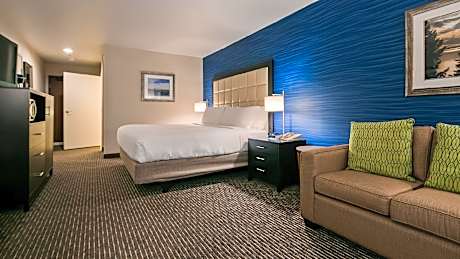 Located in Bellingham, 5.3 miles from Western Washington University, Holiday Inn Express Bellingham by IHG provides accommodations with a fitness center, free private parking and a shared lounge. Built in 1994, this 2-star hotel is within 6 miles of Whatcom Falls Park and 6.2 miles of Fairhaven Amtrak Station. The hotel features an indoor pool, hot tub and a 24-hour front desk. Guest rooms are equipped with air conditioning, a flat-screen TV with cable channels, a fridge, a coffee machine, a shower, free toiletries and a desk. Each room is equipped with a private bathroom equipped with a bath and a hairdryer, while certain rooms include a kitchenette. Guest rooms will provide guests with a microwave. A buffet, continental or American breakfast is served at the property. A business center and vending machines with snacks and drinks are available on site at the hotel. Morgan Creek is 27 miles from Holiday Inn Express Bellingham by IHG, while Northview Golf and Country Club is 30 miles away. Bellingham International Airport is 3.1 miles from the property.