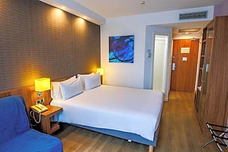 The Holiday Inn Express Bilbao is just 5 minutes’ drive from Bilbao Airport and the hotel offers a free airport shuttle service for guests on request. Modern rooms come with satellite TV and free WiFi is available. Green Key ecolabel certified. Rooms at the Holiday Inn Express are stylishly decorated in dark blue tones. They come with air conditioning and a flat-screen TV with satellite channels. The Holiday Inn Express is located 6.2 mi from Bilbao and buses leave from outside the hotel, with direct routes to the airport, where you can get a bus to the city center. Guests can visit attractions such as the iconic Guggenheim Museum. A buffet breakfast is served in the recently refurbished dining room. There is a vending machine for snacks and a microwave available for use. Guests can also relax in the hotel’s lobby bar. License of this ID HBI-01225