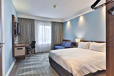 Located in Umhlanga Ridge, Holiday Inn Express Durban-Umhlanga is just 2953 feet from Gateway Theater of Shopping. La Lucia Ridge offices are a 2-minute drive away. The hotel offers secure undergound parking at R50 per vehicle per day and features 24-hour security for peace-of-mind. All rooms at Holiday Inn Express Durban-Umhlanga are equipped with a work desk, electronic safe, mini fridge (not stocked), tea/coffee making facilities and a private bathroom with signature Power Shower. Each room is air conditioned and has a 43" TV with a limited DStv satellite bouquet. Our Double Rooms feature a sleeper couch, which can be made up on request and can sleep a maximum of 2 children under 16. The hotels offers free, unlimited Wi-fi throughout. A complimentary Express Start Buffet Breakfast is served each morning and consists of a full continental spread (muffins, pastries, breads, cheeses, fruit, yogurts, cereals, juices, coffees), as well as 5 hot items, including the standard favorites of scrambled eggs and bacon. If you don't have time to sit and eat breakfast, you can grab something from our Grab & Go section and have your coffee on the go. While the hotel does not have its own restaurant, the popular Butcher Block Steak House is located right next to our pool area. We have a great relationship with Butcher Block and guests are able to sign their bill back to their room. The Butcher Block restaurant serves lunch and dinner daily. In the evenings, guests can enjoy a drink at our Great Room Bar before heading out to experience the Durban nightlife. Spend lazy summer days around the pool, which features pool loungers and does not have a lifeguard on duty. Holiday Inn Express Durban - Umhlanga is perfectly located 15 minutes by car from King Shaka International Airport and only 16kms from the Durban ICC.