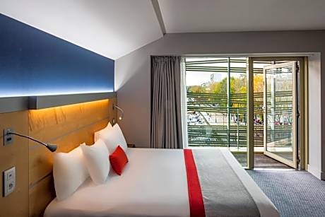 The Holiday Inn Express Paris-Canal De La Villette is located on the banks of the Canal de l'Ourcq and the Bassin de la Villette in Paris. Located a 50-minute metro ride from Stade de France Stadium, this design hotel features wooden terraces and a private garden that overlooks the canal. The Canal de la Villette Holiday Inn offers soundproofed rooms equipped with air conditioning and a TV with 100 TV channels. They each have a private bathroom, and are serviced by a elevator. Free high-speed WiFi is provided in all areas. Guests can enjoy traditional French cuisine and fish specialties at the restaurant located in the same building as the hotel. There is also a bar, a 24-hour reception and a safety deposit box available at the reception. The Holiday Inn Express Paris is just a 5-minute walk from the Riquet Metro Station, which provides direct access to the Opera Garnier and Le Louver. Les Docks de Paris Event Venue are 1.6 mi away.