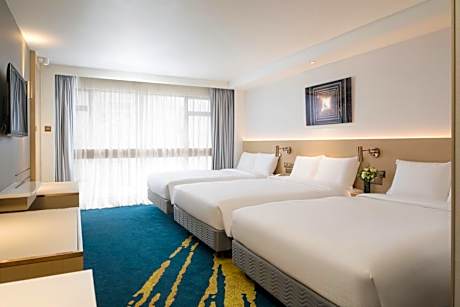 Holiday Inn Golden Mile By IHG provides flawless service and all the necessary facilities for visitors.Stay connected with your associates, as complimentary Wi-Fi is available during your entire visit. To facilitate your arrival and departure, you can pre-book airport transfer services prior to checking in.The hotel offers taxi amenities to assist you in discovering your desired offerings in Hong Kong.When arriving by car, take advantage of the hotel's convenient on-site parking facilities.The hotel offers reception amenities including concierge service, express check-in or check-out, luggage storage and safety deposit boxes to ensure a comfortable stay for guests.Whether it's an extended stay or simply needing fresh attire, dry cleaning service and laundry service provided by hotel ensures your cherished travel garments stay spotless and accessible. Your stay will be comfortable with the presence of 24-hour room service, room service and daily housekeeping as an in-room amenity for your relaxation and enjoyment. To ensure the well-being and convenience of all visitors, smoking is strictly prohibited throughout the entire hotel. In order to ensure the utmost level of relaxation, the guestrooms feature an inviting design and are equipped with all basic necessities, creating a delightful stay experience. To ensure a pleasant stay, a selection of rooms at hotel come furnished with linen service, blackout curtains and air conditioning, all designed with your ease in mind.Several chosen accommodations at Holiday Inn Golden Mile By IHG have a separate living room incorporated into the room design. In select rooms, visitors can enjoy a touch of amusement with the availability of daily newspaper, television, in-room video streaming and cable TV for their entertainment needs. Within specific rooms, a refrigerator, bottled water, a coffee or tea maker, instant coffee, instant tea and mini bar is conveniently available for your use.Understanding the significance of bathroom facilities in enhancing visitor contentment, hotel offers a hair dryer, toiletries and bathrobes within a few chosen chambers. To experience refined leisure, do not miss the opportunity to drop by the executive lounge. Start your day stress-free at Holiday Inn Golden Mile By IHG as breakfast is made available for you on the premises. How about kicking off each day of your getaway with a delicious cup of coffee? At the hotel, relish in the invigorating taste of a freshly brewed, excellent coffee. Various excellent meal offerings at hotel ensure that enticing and easily accessible options are constantly available. Upon your arrival, don't miss experiencing bar for enjoyable in-house evening entertainment. Visitors staying at Holiday Inn Golden Mile By IHG have the option to receive groceries in their room for meal preparation, courtesy of the unique service provided by the hotel.Throughout the day, engage in the entertaining activities available at Holiday Inn Golden Mile By IHG. Unwind and conclude each day delightfully by stopping by salon, steam room and sauna, ensuring a soothing experience. Unwind by the pool at hotel and cherish a leisurely moment.Enjoy a refreshing beverage al fresco at hotel's poolside bar savoring your preferred concoction.Guests who enjoy maintaining their fitness regimen while on holiday can visit the fitness center provided by hotel.
