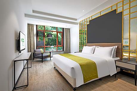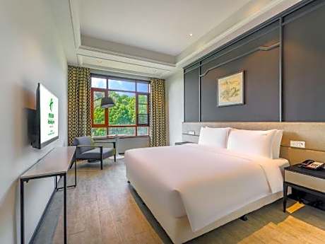 Great care is taken to ensure guests experience comfort through top-notch services and amenities.Remain linked during your visit by utilizing the complimentary internet access available.The hotel offers complimentary parking for guests who arrive with their own mode of transport.Effortlessly plan your daily activities and travel requirements with express check-in or check-out, luggage storage and safety deposit boxes provided by the front desk services.For extended visits or whenever required, the dry cleaning service and laundry service ensures your preferred travel garments remain clean and accessible.During leisurely days and evenings, in-room amenities such as 24-hour room service, room service and daily housekeeping enable you to maximize your stay in the room. The hotel is completely smoke-free.In limited designated zones, smoking is exclusively permitted. Crafted for coziness, every guestroom provides an array of features, guaranteeing a tranquil night's sleep while maintaining the level of comfort. For a more enjoyable stay, select rooms at hotel are equipped with blackout curtains and air conditioning. For certain chosen rooms, guests can enjoy in-room amusement like television, in-room video streaming and cable TV as a part of their stay.Rest assured that your hydration needs will be met, as some guestrooms are equipped with a refrigerator, a coffee or tea maker, instant coffee, instant tea and mini bar.It is worth noting that certain guest bathrooms feature a hair dryer, toiletries, bathrobes and towels for your convenience. Each morning at Holiday Inn Hangzhou Chaoshan, a scrumptious, homemade breakfast kick-starts the day.During your visit, indulge in a range of delightful culinary choices at hotel to enhance your experience.Snack vending machines operate around the clock, providing you with easy access to treats regardless of the hour.Holiday Inn Hangzhou Chaoshan provides a superb assortment of leisure amenities for guests to enjoy. Treat and spoil yourself by taking a trip to hot tub. Begin your holiday perfectly by taking a plunge into the swimming pool.Eliminate those holiday calories by stopping by hotel and making use of their well-equipped exercise amenities.