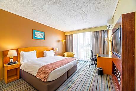 Located in Harare, 1.6 miles from Chapman Golf Club, Holiday Inn - Harare by IHG provides accommodations with an outdoor swimming pool, free private parking, a terrace and a restaurant. With a bar, the 4-star hotel has air-conditioned rooms with free WiFi, each with a private bathroom. The property has room service, a 24-hour front desk and currency exchange for guests. Guest rooms are equipped with a flat-screen TV with satellite channels, an electric tea pot, a shower, free toiletries and a desk. All guest rooms include a closet. A buffet breakfast is available at the hotel. Royal Harare Golf Club is 1.7 miles from Holiday Inn - Harare by IHG, while Harare Botanical Gardens is 2 miles from the property. Robert Gabriel Mugabe International Airport is 8.1 miles away, and the property offers a paid airport shuttle service.
