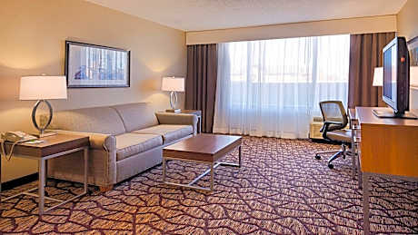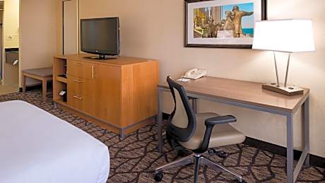 This Warren, Michigan hotel is just a 20-minute drive from Greektown in downtown Detroit. It offers an indoor pool, on-site restaurant and rooms with free WiFi. Guests can enjoy complimentary dinner served on Tuesday and Wednesday evenings. Cable TV with pay-per-view movies, a coffee maker and hairdryer are provided in every room. A comfortable lounge chair is also offered. Every room at Warren Holiday Inn is styled in neutral colors with bright accents. Picasso's restaurant serves Mediterranean and American cuisine for breakfast and dinner. A full bar is available at Picasso's Lounge. Holiday Inn Hotel & Suites Warren has a gym on site. A 24-hour business center is available. The Detroit Zoo is 8.6 miles from this hotel. Greenfield Village and Henry Ford Museum are 30 minutes’ drive from this hotel. Cobo Hall & Convention Center is 30 minutes away as well.