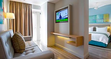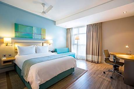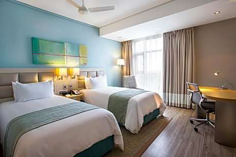 Conveniently located three minutes from the Sir Seewoosagur Ramgoolam International Airport, our hotel is fully equipped with modern rooms and high-end facilities offering all the necessary amenities for the contemporary traveler. Whether you prefer the outdoor pool, the Fitness Center, we guarantee a complete service for your well-being during your stay in our hotel. A complimentary shuttle service to and from the airport is also at your disposal. At only 10 minutes from the hotel, the Bo'Valon Mall, a shopping and retail destination in the South of the island, hosts wide specialty stores in Mauritius. Holiday Inn Mauritius Mon Trésor also offers you the endless summer experience with free access to 'Astroea Beach', a three-star Boutique Hotel. Indulge in a relaxing and exciting private beachfront getaway with sun lounges and private dining tables directly overlooking the emerald lagoon. Combining work and pleasure is now possible thanks to the Holiday Inn Mauritius Mon Trésor.