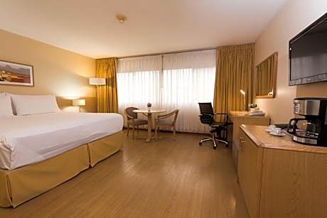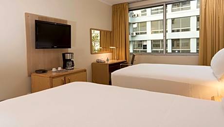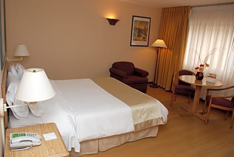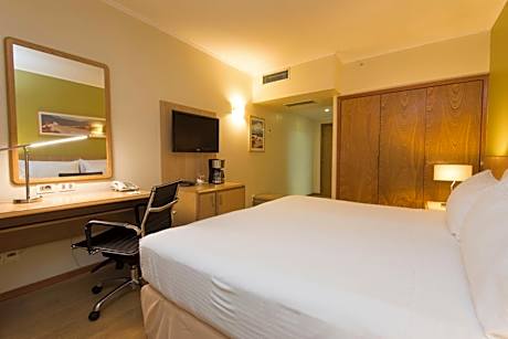 • Featuring an indoor swimming pool and a fitness center, Holiday Inn offers stylish rooms with cable TV and breakfast, only 1640 feet from Montevideo City Hall. Tres Cruces Bus terminal is 1.2 mi away. • Bright and spacious, rooms at Holiday Inn Montevideo are elegantly decorated in soft hues. All of them feature work desks and mini-bars. Some of them have large seating areas and private spa baths. • A buffet breakfast including pastries, ham and cheese is served daily. Drinks and snacks can be ordered at the lounge bar. • Guests can unwind on the sun loungers available at the terrace or make use of the sauna. Free WI-Fi is available in public areas, and wired internet is featured in the rooms. • Excursions can be booked at the tour desk. Montevideo’s harbor is a 5-minute drive away. Holiday Inn Montevideo is 19 mi from Carrasco International Airport. • In accordance with Uruguayan tax laws, during the high season (from November 15 to Easter Sunday) Uruguayan citizens must pay a VAT of 10%. Said tax is not included in the total price of the reservation. • Payment will be made to the hotel in your local currency (UYU) based on the exchange rate in effect on the day of payment. • In accordance with the country's tax regulations, Uruguayan citizens are required to pay a supplement of 10%. This amount is not automatically included in the total reservation.
