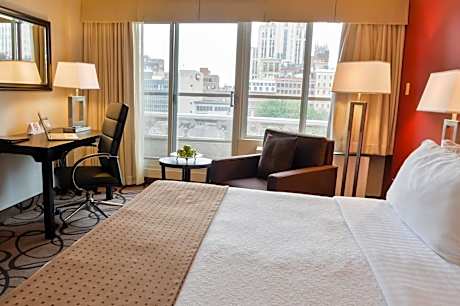 Located across the Montreal Convention Center and 20 minutes’ drive from the airport, Holiday Inn Montreal Center Ville Downtown offers free WiFi. The hotel features an indoor pool and fitness center. A cable TV is available in each room at Holiday Inn Montreal Downtown. There is also air conditioning, a desk and a coffee maker. A hot tub, sauna and massage facilities are offered at this hotel. Guests at the Downtown Montreal Holiday Inn can enjoy gourmet dining at the on-site restaurant Chez Chiné. The property also has an on-site gift shop. Holiday Inn Montreal Center Ville is less than 5 minutes’ walk from Chinatown and one block from the shops of Old Montreal. Guests can easily access the Underground City, only 12 minutes' walk from the hotel. License Number(s): 2026-11-30, 603536