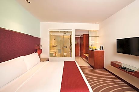 Great care is taken to ensure guests experience comfort through top-notch services and amenities.Remain linked during your visit by utilizing the complimentary internet access available.Prior to your check-in date, you can arrange airport transportation services, guaranteeing a seamless and efficient experience for both arrival and departure.Discovering Mumbai becomes even more accessible, thanks to the car hire amenities provided at the hotel.The hotel offers complimentary parking for guests who arrive with their own mode of transport. Effortlessly plan your daily activities and travel requirements with concierge service, express check-in or check-out, luggage storage and safety deposit boxes provided by the front desk services. Securing top-notch tickets and reserving prime dining spots become effortless through assistance from the hotel's tours. For extended visits or whenever required, the laundromat, dry cleaning service and laundry service ensures your preferred travel garments remain clean and accessible. During leisurely days and evenings, in-room amenities such as 24-hour room service, room service and daily housekeeping enable you to maximize your stay in the room. For minor or impromptu requirements, the convenience stores can promptly cater to them without the necessity of stepping out from the hotel. The hotel is completely smoke-free. In limited designated zones, smoking is exclusively permitted.Crafted for coziness, every guestroom provides an array of features, guaranteeing a tranquil night's sleep while maintaining the level of comfort. For a more enjoyable stay, select rooms at hotel are equipped with linen service, blackout curtains and air conditioning. For certain chosen rooms, guests can enjoy in-room amusement like daily newspaper, television and cable TV as a part of their stay. Rest assured that your hydration needs will be met, as some guestrooms are equipped with a refrigerator, a coffee or tea maker, bottled water, instant coffee, instant tea and mini bar.It is worth noting that certain guest bathrooms feature a hair dryer, toiletries and bathrobes for your convenience. Chosen accommodation prices might include entry to the executive lounge, offering premium services amid an ambiance of refined extravagance. Each morning at Holiday Inn Mumbai International Airport By IHG, a scrumptious, homemade breakfast kick-starts the day. Begin your holiday mornings right with your essential cup of coffee, offered daily at the cafe on-site. During your visit, indulge in a range of delightful culinary choices at hotel to enhance your experience. Experience a fantastic evening effortlessly! Relish an entertaining night without venturing beyond the confines of the bar.Experience unparalleled comfort as groceries can be brought right to your room at Holiday Inn Mumbai International Airport By IHG through their distinctive delivery assistance. Holiday Inn Mumbai International Airport By IHG provides a superb assortment of leisure amenities for guests to enjoy.Treat and spoil yourself by stopping at massage, spa and sauna for a memorable experience.Begin your holiday perfectly by taking a plunge into the swimming pool. At the hotel, enjoy a laid-back beverage experience by the poolside bar, sipping on a soothing cocktail.Eliminate those holiday calories by stopping by hotel and making use of their well-equipped exercise amenities.