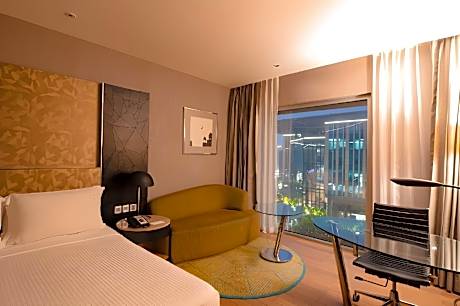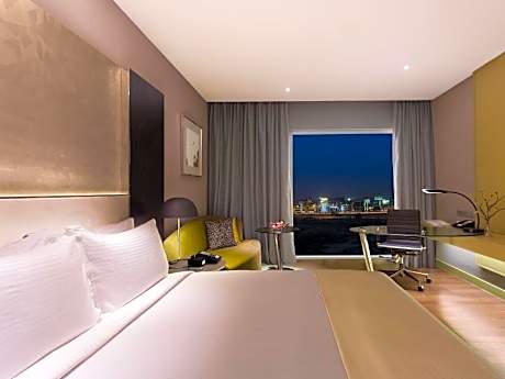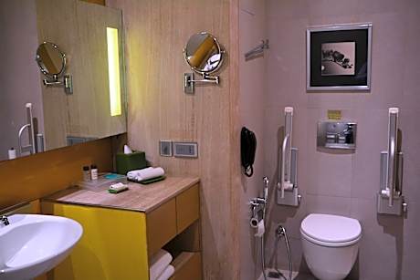 Holiday Inn New Delhi Aerocity By IHG offers top-notch services and amenities, ensuring guests experience utmost comfort.Share your photos and respond to emails at your convenience, thanks to the free Wi-Fi internet access offered by hotel. Should you require transportation to or from the airport, hotel is able to organize it prior to your arrival date.Taxi and car hire offerings at the hotel simplify arranging your excursions, explorations, and additional activities in New Delhi and NCR.Visitors can take advantage of complimentary parking directly at the hotel.Reception services such as concierge service, express check-in or check-out, luggage storage and safety deposit boxes are available to accommodate your requirements.Securing top-notch tickets and snagging sought-after dining reservations become effortless, thanks to the hotel's ticket service and tours.Traveling with minimal baggage is achievable at Holiday Inn New Delhi Aerocity By IHG, as the hotel's dry cleaning service and laundry service ensures your garments stay fresh. Room amenities like 24-hour room service, room service and daily housekeeping contribute to making a perfect selection for your stay. Minor items you neglected to bring won't cause major issues! Simply visit convenience stores to acquire what's necessary.Smoking is limited to specified smoking zones. Each accommodation at Holiday Inn New Delhi Aerocity By IHG is thoughtfully created and adorned to provide visitors with a comfortable, home-like atmosphere. In certain rooms, the hotel offers linen service, blackout curtains and air conditioning for guest convenience and satisfaction.In select rooms, guests at the hotel can enjoy top-notch in-room entertainment with daily newspaper, television and cable TV available for their convenience.Rest assured, in a few chosen rooms, you will find the convenience of a refrigerator, a coffee or tea maker, bottled water and mini bar at your disposal.Maintain your cleanliness and comfort using a hair dryer, toiletries and bathrobes available in select guest restrooms. Embark on your holiday experience in the most ideal manner. Commence each morning of your visit with an on-site breakfast. Experience the delight of a fresh morning by savoring excellent coffee at the cafe situated within hotel.Should you prefer not to venture out for a meal, the enticing culinary choices at hotel are always available for your satisfaction. No matter your specific dietary needs, rest assured that Holiday Inn New Delhi Aerocity By IHG provides an array of halal choices to ensure your dining experience is nothing short of delightful. Experience an unforgettable evening with your fellow travelers just a short distance away, at hotel's bar.For those who prefer savoring meals within their personal space, Holiday Inn New Delhi Aerocity By IHG offers the convenience of doorstep grocery delivery, allowing you to prepare and enjoy food in your room. Should you be particularly discerning in your dining choices, you will surely appreciate having access to the on-site shared kitchen provided at this location. Indulge in the numerous pursuits available at Holiday Inn New Delhi Aerocity By IHG.Unwind after a long day by stopping by massage, salon, steam room, spa and sauna to rejuvenate your senses. Each day at hotel, immerse yourself in the invigorating waters of the pool, perfect for a rejuvenating plunge or a series of revitalizing laps.For individuals who don't want to skip their exercise routine, visiting the hotel fitness center ensures you maintain your vitality and wellness.