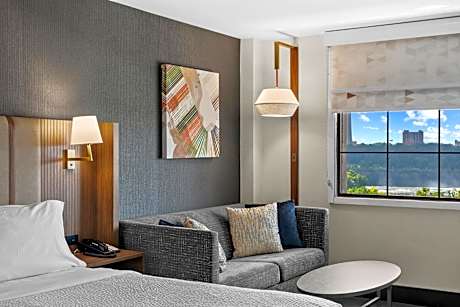 This Niagara Falls hotel is within 0.8 mi of the American Falls and Seneca Casino. The entrance to Niagara Falls State Park is 2133 feet away. This hotel features an indoor pool and free WiFi All guest rooms include a refrigerator, coffee maker and flat-screen cable TV. Guests have access to the fitness center and business center. Anchor Bar Original Buffalo Chicken Wing Restaurant serves American dishes throughout the day and offers beer, wine and cocktails in the evening. Room service is available. The Maid of the Mist Boat Tours and the Aquarium of Niagara are both less than 0.9 mi from the Holiday Inn Niagara Falls. Niagara Falls International Airport is 8.5 mi away.