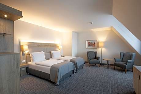 The hotel ensures a restful stay with soundproof rooms equipped with satellite TV and a minibar, including complimentary soft drinks to refresh you upon arrival. From dining in the two on-site restaurants to unwinding on the summer terrace, every element of your stay is designed for your enjoyment and convenience.