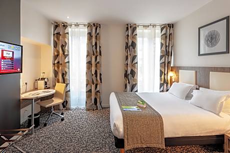 The Holiday Inn Paris Opéra Grands Boulevards is in the 9th district of Paris, next to Grands Boulevards Metro and a 10-minute walk from Opéra Garnier and Galeries Lafayette. It has air-conditioned rooms with satellite TV and soundproofing. Each guest room at this Holiday Inn has design décor and a private bathroom with a bathtub or shower. Each offers a view of the boulevard or the hotel’s private courtyard. All rooms are serviced by an elevator. This hotel has a breakfast menu with a wide selection of choice. It is served in the breakfast room, which offers a panoramic view of the area, or in guests’ rooms upon request. Holiday Inn Grands Boulevards has a 24-hour front desk and additional services available include free newspapers, a laundry service and a meeting room. The hotel is a 20-minute walk from The Sacré Coeur and Montmartre. The Eiffel Tower is a 20-minute Metro ride away.