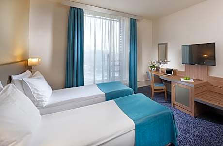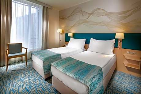 Holiday Inn Prague enjoys a quiet location, a few steps away from Vysehrad Castle and Park. Vysehrad Metro station can be reached within 492 feet. All rooms offer air conditioning. The rooms are equipped with Satellite TV, a small refrigerator and a safe. A choice of pillows and anti-allergic blankets will be provided. The massage room features oriental decoration and offers a wide selection of massages. Modern Czech and international cuisine are served at the Restaurant Esprit which features a winter garden and a terrace. Délicatesse Bistro with a summer terrace is ideal for a quick breakfast, an excellent lunch menu, fresh salads, sandwiches or delicious home-made desserts. Historic Wenceslas Square can be reached within 2 stops by metro.