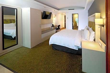 An outdoor pool, a 24-hour gym and free Wi-Fi are included at this modern hotel. It offers a free airport shuttle service and panoramic views over the historic city of Queretaro. Spacious, air-conditioned rooms with flat-screen cable TV can be found at the Holiday Inn Queretaro Zona Diamante. A coffee maker and safe are provided, while bathrooms include toiletries and a hairdryer. The Holiday Inn Queretaro is located a 15-minute walk from Queretaro 2000 Park, and a 5-minute drive from the historic city center. Free public parking can be found on site. Mexican and international cuisine is served at the hotel’s Stellaris restaurant. You can enjoy lunch at the La Pergola poolside restaurant. In the evening, the Halley lounge bar offers live music.