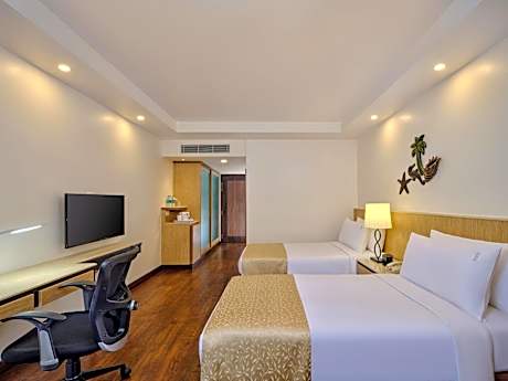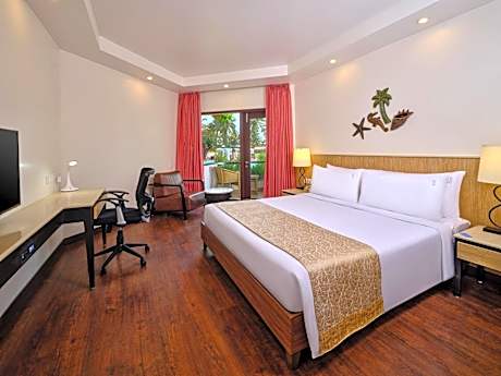 Great care is taken to ensure guests experience comfort through top-notch services and amenities. Remain linked during your visit by utilizing the complimentary internet access available.Prior to your check-in date, you can arrange airport transportation services, guaranteeing a seamless and efficient experience for both arrival and departure. Experience the wonders of Goa with ease by utilizing the services provided at shuttle.The hotel offers complimentary parking for guests who arrive with their own mode of transport. Reception services featuring concierge service are available to cater to your requirements.Securing top-notch tickets and reserving prime dining spots become effortless through assistance from the hotel's ticket service.For extended visits or whenever required, the dry cleaning service and laundry service ensures your preferred travel garments remain clean and accessible.During leisurely days and evenings, in-room amenities such as 24-hour room service, room service and daily housekeeping enable you to maximize your stay in the room.The hotel is completely smoke-free.Crafted for coziness, every guestroom provides an array of features, guaranteeing a tranquil night's sleep while maintaining the level of comfort. For a more enjoyable stay, select rooms at hotel are equipped with linen service and air conditioning.At Holiday Inn Resort Goa By IHG, guests can choose from a variety of room configurations, some of which feature separate living room and balcony or terrace. For certain chosen rooms, guests can enjoy in-room amusement like daily newspaper, television, in-room video streaming and cable TV as a part of their stay.Rest assured that your hydration needs will be met, as some guestrooms are equipped with a refrigerator, a coffee or tea maker, bottled water and mini bar. It is worth noting that certain guest bathrooms feature a hair dryer, toiletries and bathrobes for your convenience. Each morning at Holiday Inn Resort Goa By IHG, a scrumptious, homemade breakfast kick-starts the day.During your visit, indulge in a range of delightful culinary choices at hotel to enhance your experience. Experience a fantastic evening effortlessly! Relish an entertaining night without venturing beyond the confines of the bar. Do you possess exceptional culinary skills? Prepare your meals personally within the hotel at its shared kitchen.Holiday Inn Resort Goa By IHG provides a superb assortment of leisure amenities for guests to enjoy.During your stay, the hotel provides direct access to a beach, ensuring you remain near the sea throughout your visit.Begin your holiday perfectly by taking a plunge into the swimming pool.Eliminate those holiday calories by stopping by hotel and making use of their well-equipped exercise amenities.