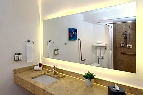 Holiday Inn Resort Mazatlan offers an outdoor pool, fitness center and business center. Guests can enjoy the on-site restaurant and bar. Every room at this hotel is air conditioned and comes with a flat-screen cable TV, private bathroom with a hair dryer and amenities. An iron with ironing board as well as a safety deposit box is available. A coffee maker can also be found in the room. The Sky Gym is located on the 13th floor overlooking the Pacific Ocean. There is meeting room available overlooking the ocean as well. General Rafael Buelna International Airport is 13 mi away.