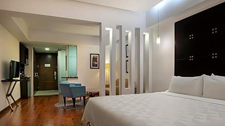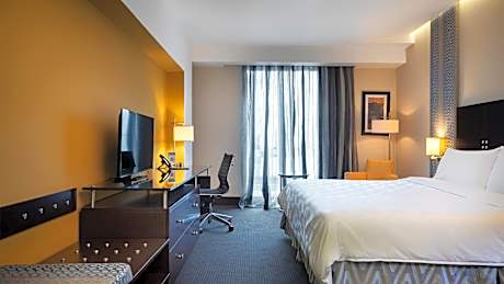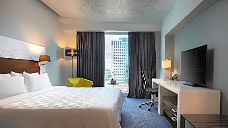 Located in the heart of Santo Domingo's business district, the Holiday Inn Santo Domingo by IHG offers a modern and comfortable stay, ideal for both business and leisure travelers. Just minutes from attractions such as the National Botanical Garden, the National Theater, Ágora Mall, and Blue Mall, this hotel features contemporary rooms with free Wi-Fi, flat-screen TVs, mini-bars, coffee makers, and, in the suites, a microwave and living room. Enjoy Mediterranean cuisine at Aromas Restaurant, cocktails at the bar, or relax on the terrace with an outdoor pool and city views. The hotel also offers a 24-hour gym, sauna, spa, business center, meeting rooms, free parking, and pet-friendly rooms. Attentive and professional service is one of the most highly rated features by guests.