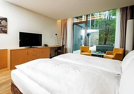 The 4-star Tailormade Hotel SIHLPARK Schindellegi is located in the village of Schindellegi, near the Wollerau exit of the A3 motorway. Free WiFi is provided. The spacious rooms feature wooden floors, a flat-screen TV, tea and coffee making facilities and an iron and ironing board. The bathrooms have a rain shower, free toiletries and a hairdryer. At our grill restaurant 48 Degrees, guests can enjoy a variety of grilled specialties in a vibrant atmosphere. The hotel also features a bar and a terrace where drinks and snacks are served. Room service is available. Zurich International Airport is a 40-minute drive from the hotel and Zurich city can be reached by train from Schindellegi - Feusisberg train station in 37 minutes.